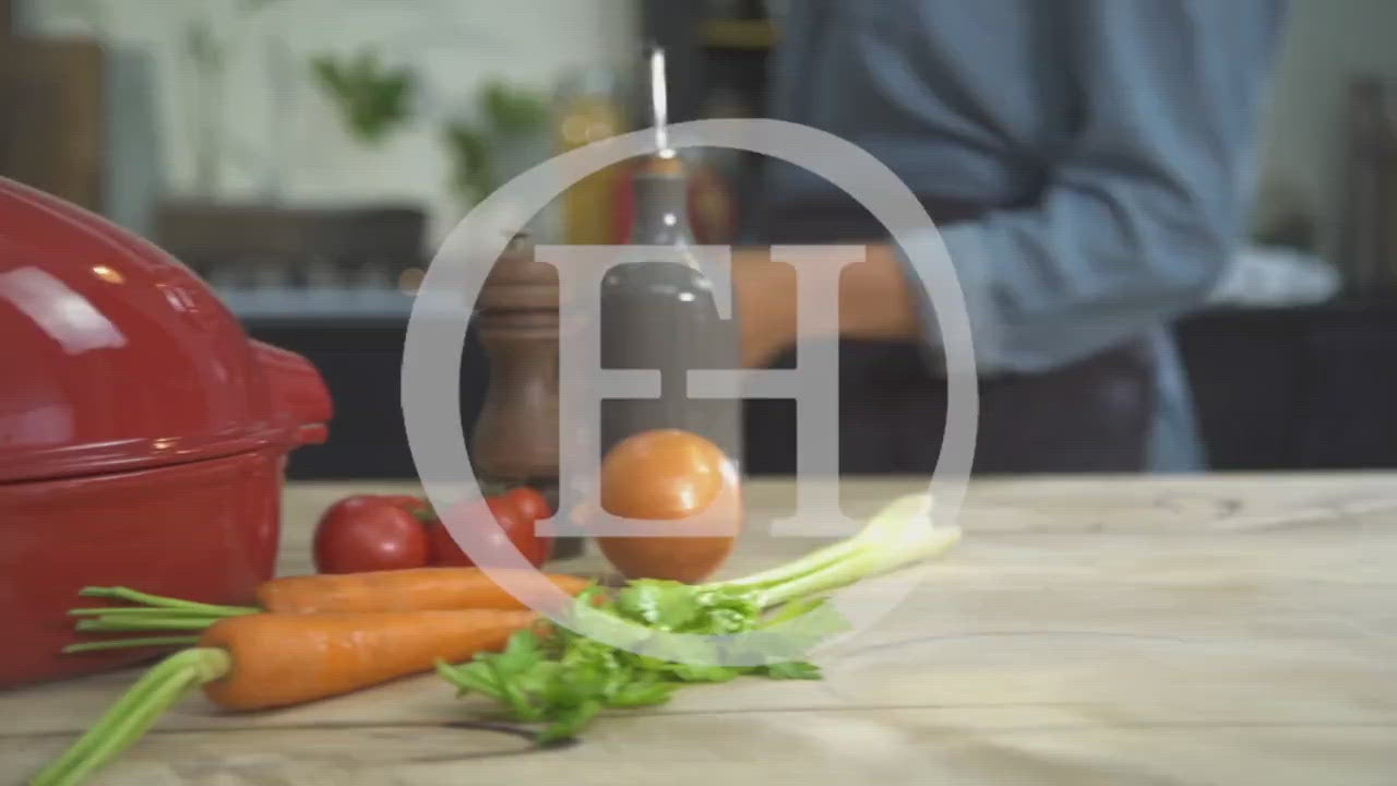 Whether it's turkey, free range chicken or leg of lamb, Emile Henry's Large Roaster allows for perfect cooking of large poultry and roasts up to 5kg, without dirtying your oven! Its unique shape ensures excellent heat diffusion during cooking: the meat remains tender and moist, while the skin of the poultry becomes crisp. In addition, it is not necessary to baste the meat; the rounded lid naturally promotes the continuous flow of steam during cooking. Easy to use, simply place the roast directly in the centre of the dish, possibly on bed of small vegetables or potatoes. Close the lid and place in the oven. The cooked meat will be soft and the vegetables will melt in your mouth (Made in France, this product is guaranteed 10 years.)